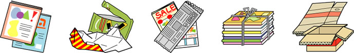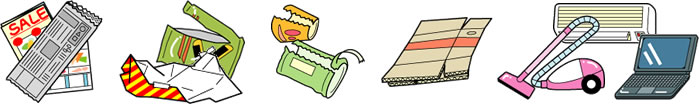 チラシ、紙ゴミ、包装ビニール類、段ボール、家電リサイクル(小売店)